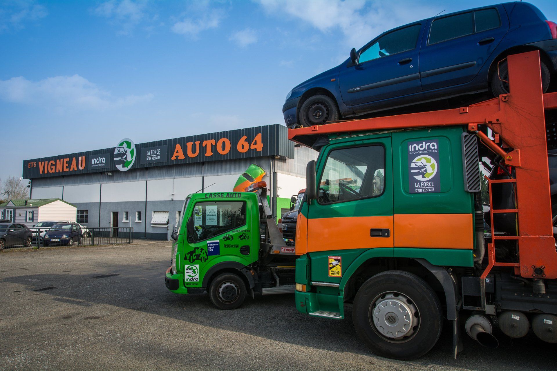 La casse de voiture, ETS Vigneau Cass'Auto 64 implantée à Escout tout près d’Oloron-Sainte-Marie dans le département des Pyrénées-Atlantiques, possède l’agrément : PR64 00011D.